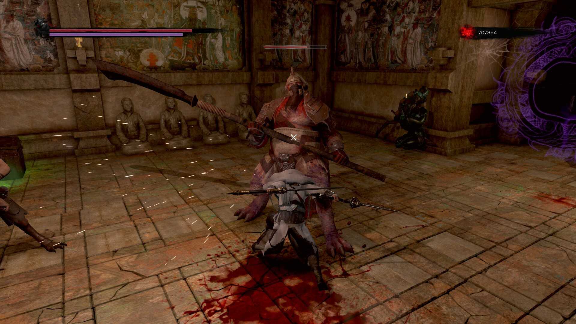 Эстетически враги представляют собой смешанный мешок, но с ними весело сражаться. Обычные пехотинцы — деформированные гуманоиды и одетые в черное воины, но часто их поддерживают более крупные синяки, такие как бронированные тролли, гигантские солдаты-убийцы, живые доспехи и даже огры размером с босса. У врагов обычно есть округлый набор движений, который включает в себя различные удары в ближнем бою и атаку на среднем или дальнем расстоянии, чтобы атаковать вас на расстоянии. Все враги агрессивны, но их легко уничтожить, если вы ознакомитесь с их жестами.