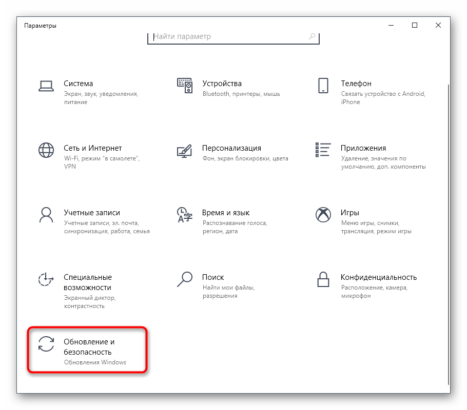 В появившемся меню выберите пункт «Обновление и безопасность».