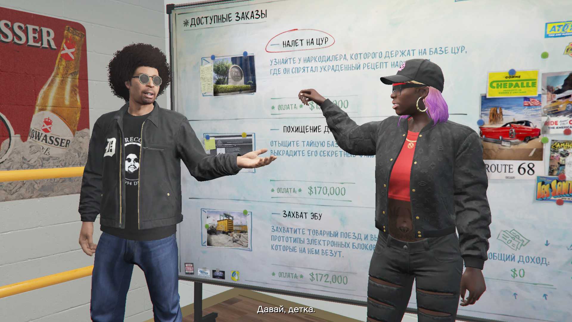 Как вы узнали выше, задания (заказы) будут вам давать Сессанта (с легкой руки переименована в Соссанту). Заказ делится на две подготовительные миссии и финальную миссию. За каждый выполненный заказ вы будете получать до 200 000 $. И здесь Rockstar стоит похвалить — чего только стоит остановка поезда или налеты на отделения банка Fleeca. Игрокам сейчас доступно шесть заказов и еще два откроются в какой-нибудь момент времени.