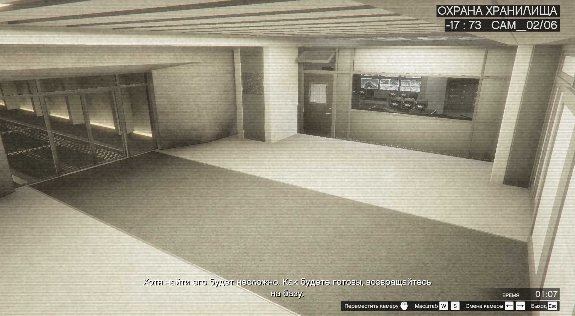 - Угнать машины из полицейского склада. Прибываем на точку, входим на склад, ищем нужные нам машины. Двигаем, закрывающие выезд, другие машины (вся техника отперта), не попадаясь в радиус обзора полицейских;