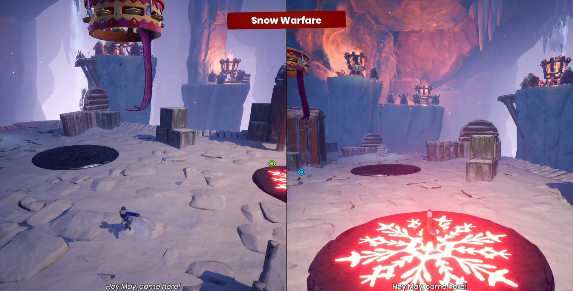 Когда окажетесь в просторной зимней деревне с тремя колокольнями, отмеченными маркерами, ищите мини-игру в пещере рядом с правой колокольней. Предварительно нужно ударить в колокол, чтобы удалить лед.