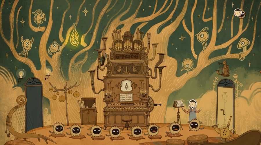 Сначала подойдите к запертой выходной двери и нажмите на ручку. Вы услышите мелодию головоломки, которую играют птицы, нарисованные на фреске. Как только вы услышите мелодию, используйте мальчика, чтобы изменить птицу на органе, чтобы она соответствовала птице на стене. Как только у вас появится нужный, переключитесь на питомца, который запрыгнет на сиденье органа. Это приведет к тому, что домашнее животное втянется в орган, а затем выплюнет имитатором (буквально), который сможет спеть соответствующую ноту на стене.