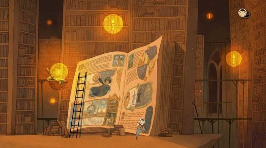 Сделайте это четыре раза, и вы заполните пустые страницы чем-то волшебным, включая дверь в то, что можно описать только как другое царство. Нажимая на парящие книги, мальчик может создать проход через библиотеку на следующий уровень.