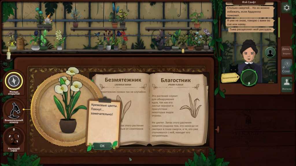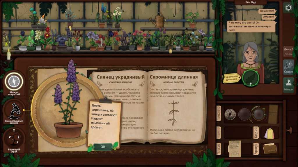 Независимо от того, какое растение вы дали ей вчера, она просит Безмятежник, чтобы помочь ей справиться с беспокойством.