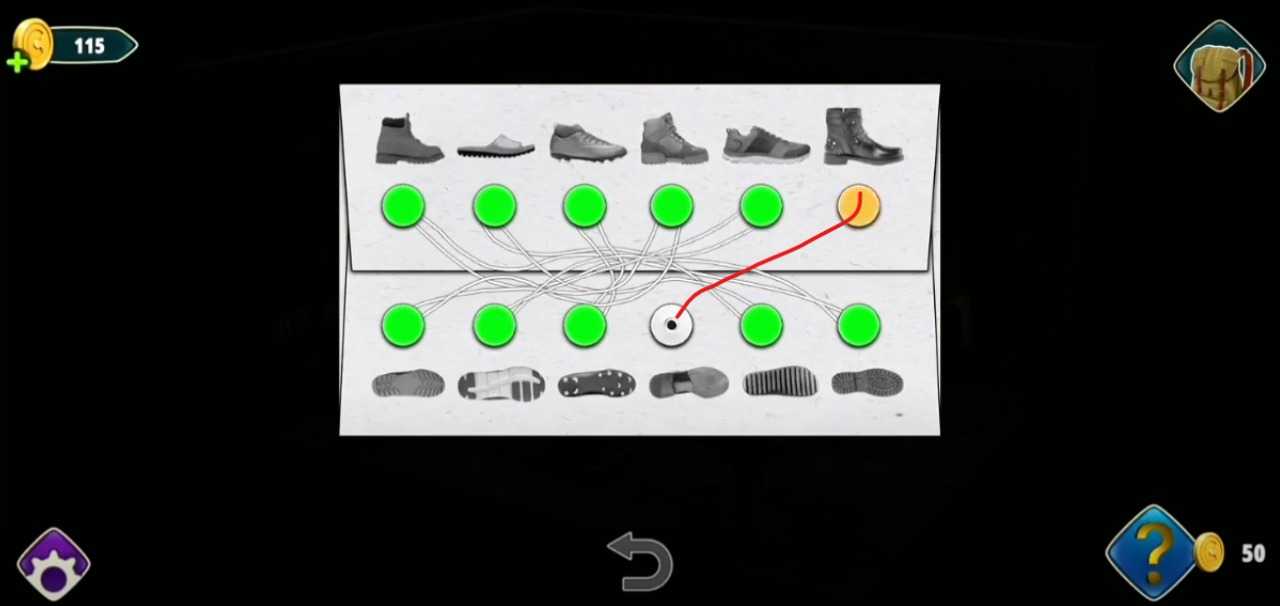 Once the door gets opened after drawing the pattern, tap on its door to play a mini-game where your goal is to connect the shoes with its soul. The game will unravel laces as you complete the puzzle.