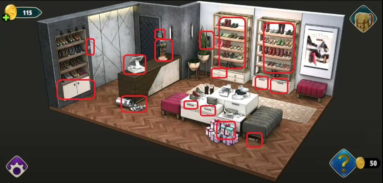 - Now, head to the shoe racks and keep all shoes from the inventory to the racks. Arrange all shoes according to the style and type to solve the puzzle that will open a secret passageway for you.