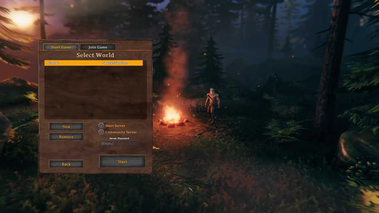- В зависимости от того, с кем вы хотите играть, выберите «Запустить сервер» или «Сервер сообщества». В первом случае вы сможете играть исключительно с друзьями, во втором — со всеми игроками в Valheim.