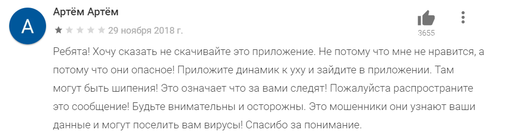 Если зайти в отзывы к приложению, можно наткнуться на сотни комментариев о том, что игра “прослушивает” пользователей и даже ворует их Apple ID и пароли.